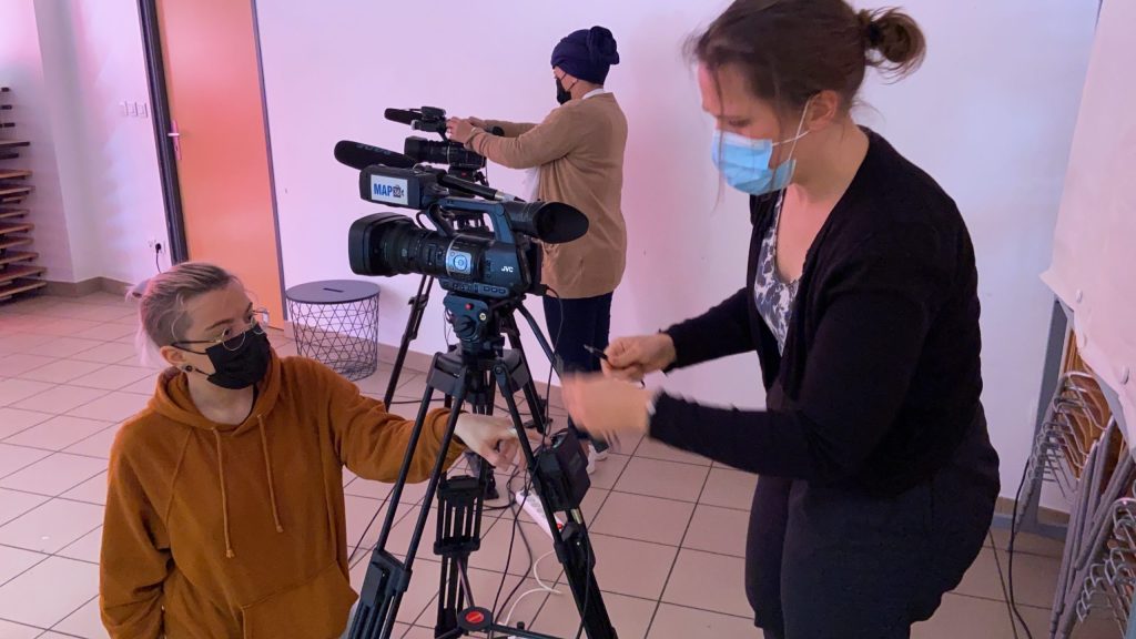 - le chemin de l’action lorsque le 26 février, un groupe de 10 stagiaires s’y collent, l’équipe de map 36 nous guident, que les invité·es arrivent et qu’enfin … à 18 heure, les rideaux se lèvent pour deux plateaux-télés réalisés dans les conditions du direct.